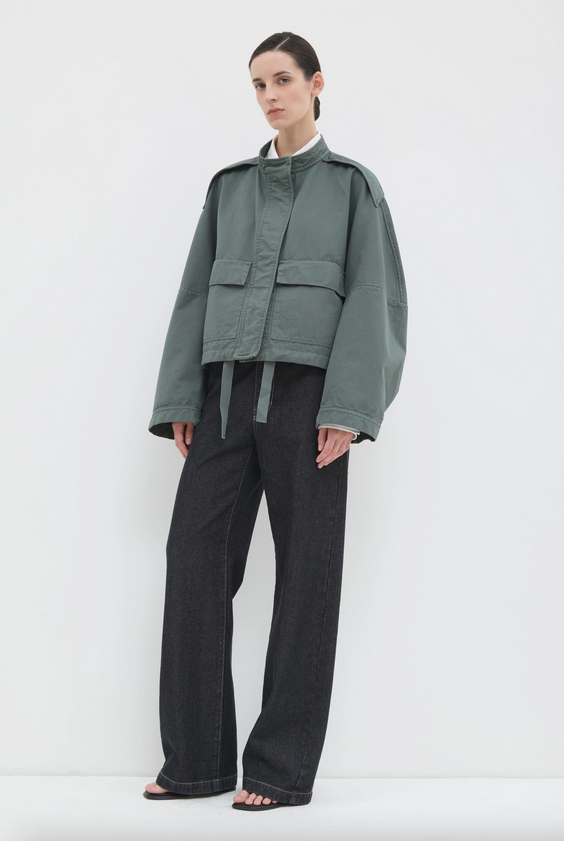 BLOUSON CHRISTIAN WIJNANTS. La veste en coton Julora allie luxe et élégance discrète. Sa coupe courte est réalisée en gabardine de coton biologique, teinte individuellement pour une profondeur de couleur riche et nuancée. Ses poches poitrine pratiques et sa coupe raffinée en font une pièce incontournable.