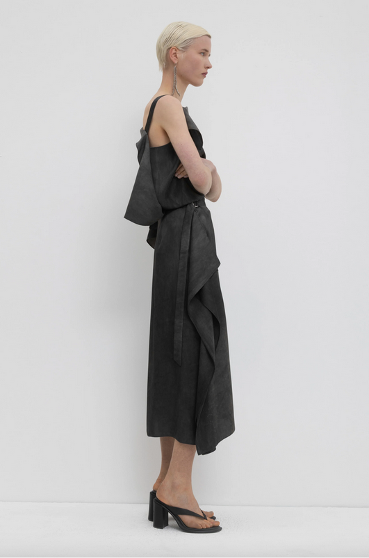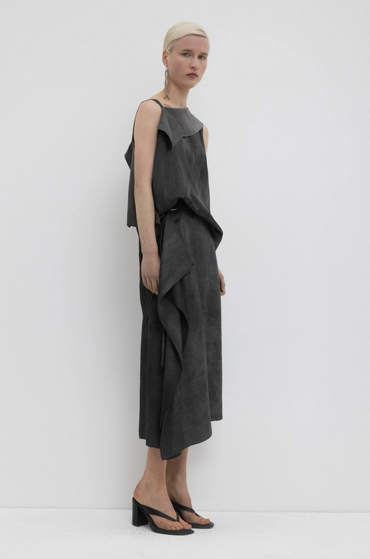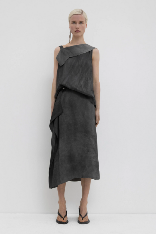 SCALA MIDI SKIRT CHRISTIAN WIJNANTS. Jupe Scala en viscose chartreuse, à la coupe asymétrique. Son ourlet asymétrique et sa matière souple épousent les mouvements avec aisance, apportant une touche de sophistication discrète à vos tenues quotidiennes. Une pièce unique qui sublime un style simple grâce à son design raffiné. Cette jupe est confectionnée selon une technique de teinture à froid, créant de subtiles variations de couleur et des irrégularités naturelles dans le tissu. Cette finition légèrement irrégulière est intentionnelle et fait partie intégrante du design, conférant à chaque pièce un caractère unique. À associer avec le top Turini chartreux pour un look complet !