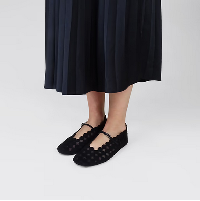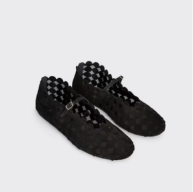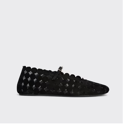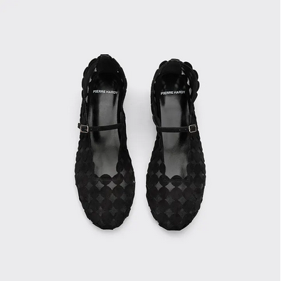 BALLERINE MINI BULLES PIERRE HARDY. Cuir de chèvre velours noir et mesh noir. Les ballerines MINI BULLES sont une fusion parfaite de souplesse et de graphisme, incarnant une féminité précieuse. Leur silhouette montante à la cheville apporte une touche d’élégance moderne, tandis que leur design épuré et contemporain les rend irrésistiblement sophistiquées. Un modèle aussi graphique que raffiné, pour une allure subtilement affirmée.