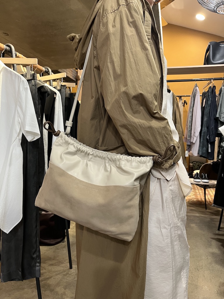 POCHETTE TWIN MAXI PIERRE HARDY, cuir d'agneau écru et cuir de veau velours camel. La pochette TWIN MAXI reprend l’élégance minimaliste de la pochette TWIN dans une version maxi. Son design épuré, associé à un cordon coulissant en cuir, allie praticité et sophistication. Conçue pour transporter facilement tous les essentiels, elle s’adapte à toutes les occasions avec son cuir souple et luxueux. Aussi chic qu’intemporelle, la pochette TWIN MAXI s’impose comme un accessoire polyvalent, parfait pour sublimer une allure décontractée ou plus habillée. Elle est dotée d’une bandoulière ainsi que d’une pochette intérieure pour plus de fonctionnalité.