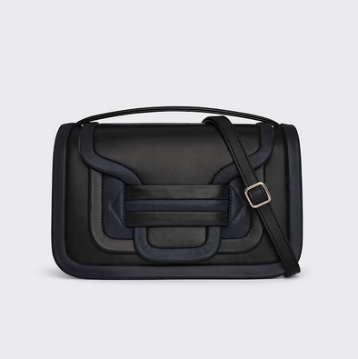SAC À MAIN ALPHA MAXI PIERRE HARDY. Cuir d'agneau noir et bleu marine. L'ALPHA MAXI est le sac emblématique de la Maison depuis sa création en 2006. Il est proposé en format maxi pour contenir tous les essentiels du quotidien. Grand rabat, large patte et passant de fermeture, ses lignes incurvées sont soulignées d’une ganse contrastée. Aucun logo, zip ou fermoir ne vient accrocher le regard de ce sac épuré.