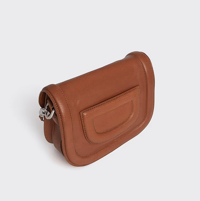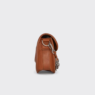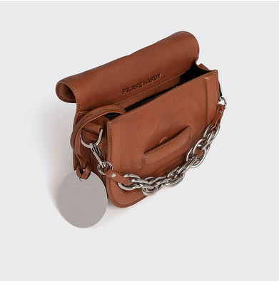SAC MINI ALPHAVILLE PIERRE HARDY. Cuir de chèvre grainé camel. Version mini du sac ALPHAVILLE, Pierre Hardy imagine un sac deux-en-un élégant et urbain: on peut le porter à la main à l'aide d'une chaîne bijoux en métal, ou à l'épaule en bandoulière.